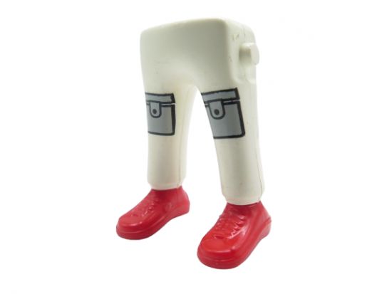 Kurzbeschreibung: Beine Mann Frau Klicky Handwerker mit Taschenaufsatz vorn rote Schnürschuhe