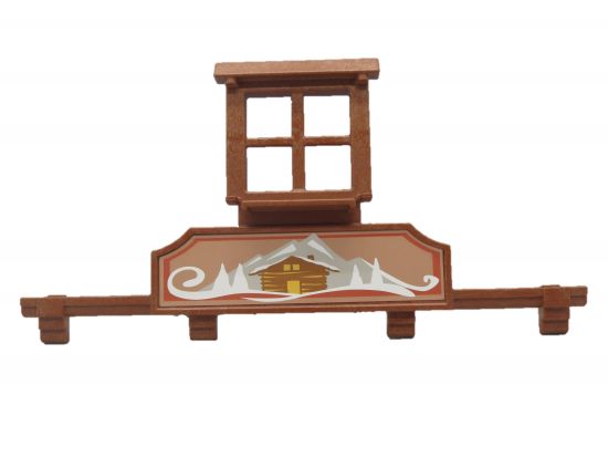 Kurzbeschreibung: Fenster mit Schild für Werbung Skihütte